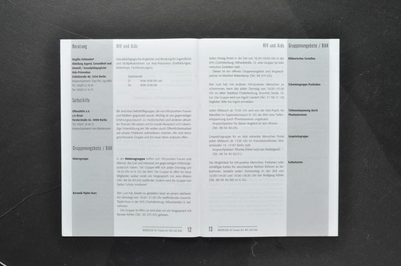BROCHURE, "Wegweiser für frauen mit HIV und AIDS" (Annuaire pour les femmes séropositives)