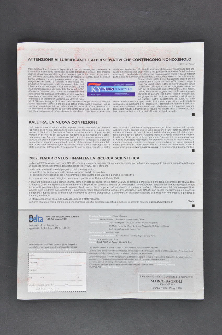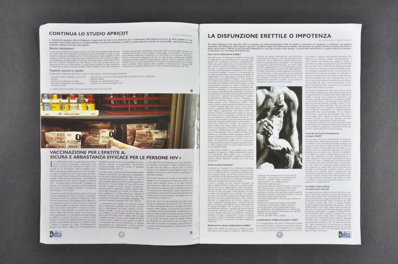 Delta // Rivista di Informazione sull'HIV (en haut à gauche, en caractères bleus et noirs sur un bandeau noir), sur la couvertureAuteur