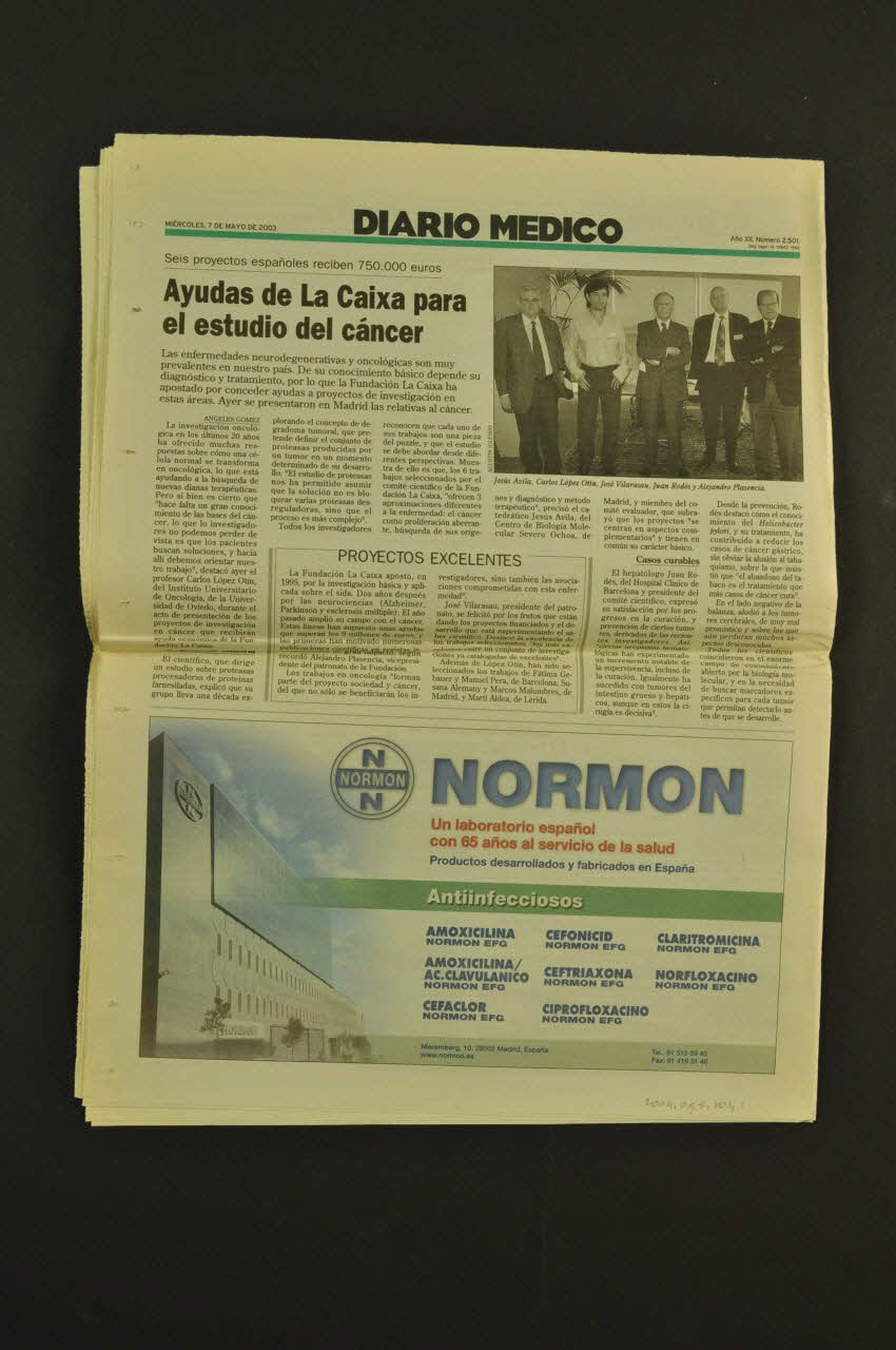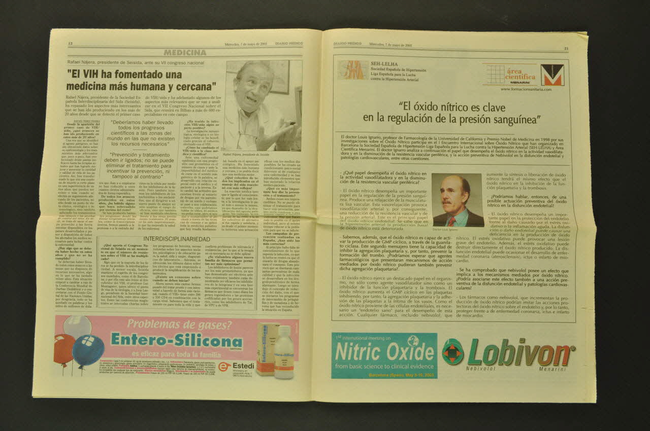 journal, "La conferencia internacional del sida de Barcelona dejo beneficios" / El VIH ha fomentado una medicina mas humana y cercana" (La conférence mondiale du sida de Barcelone a laissé des bénéfices. / Le VIH a suscité une médecine plus humaine et proche), Journal Diario Medico, 7 mai 2003