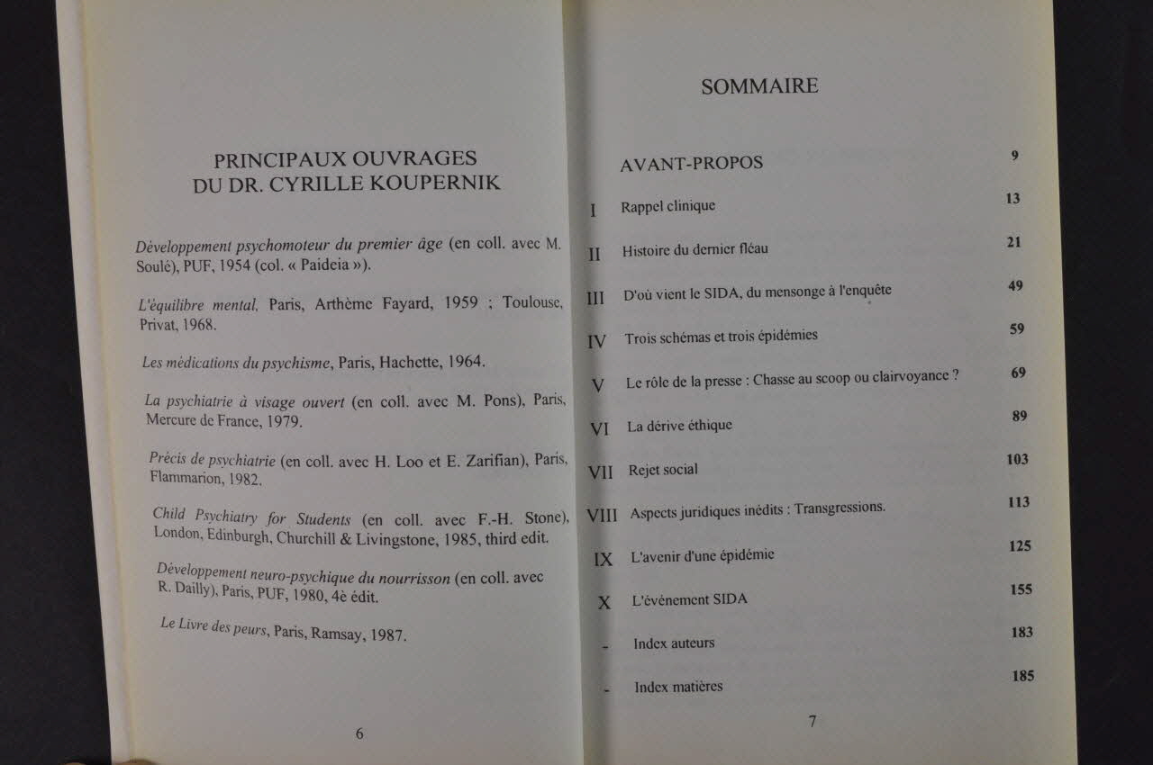 Au revers long résumé du livre et présentation de l'auteur. Cyrille Koupernik n'est pas spécialiste du sida. Il est psychiatre et a été journaliste, directeur du Concours médical. Bibliographie à la fin de chaque chapitre.Inscriptions