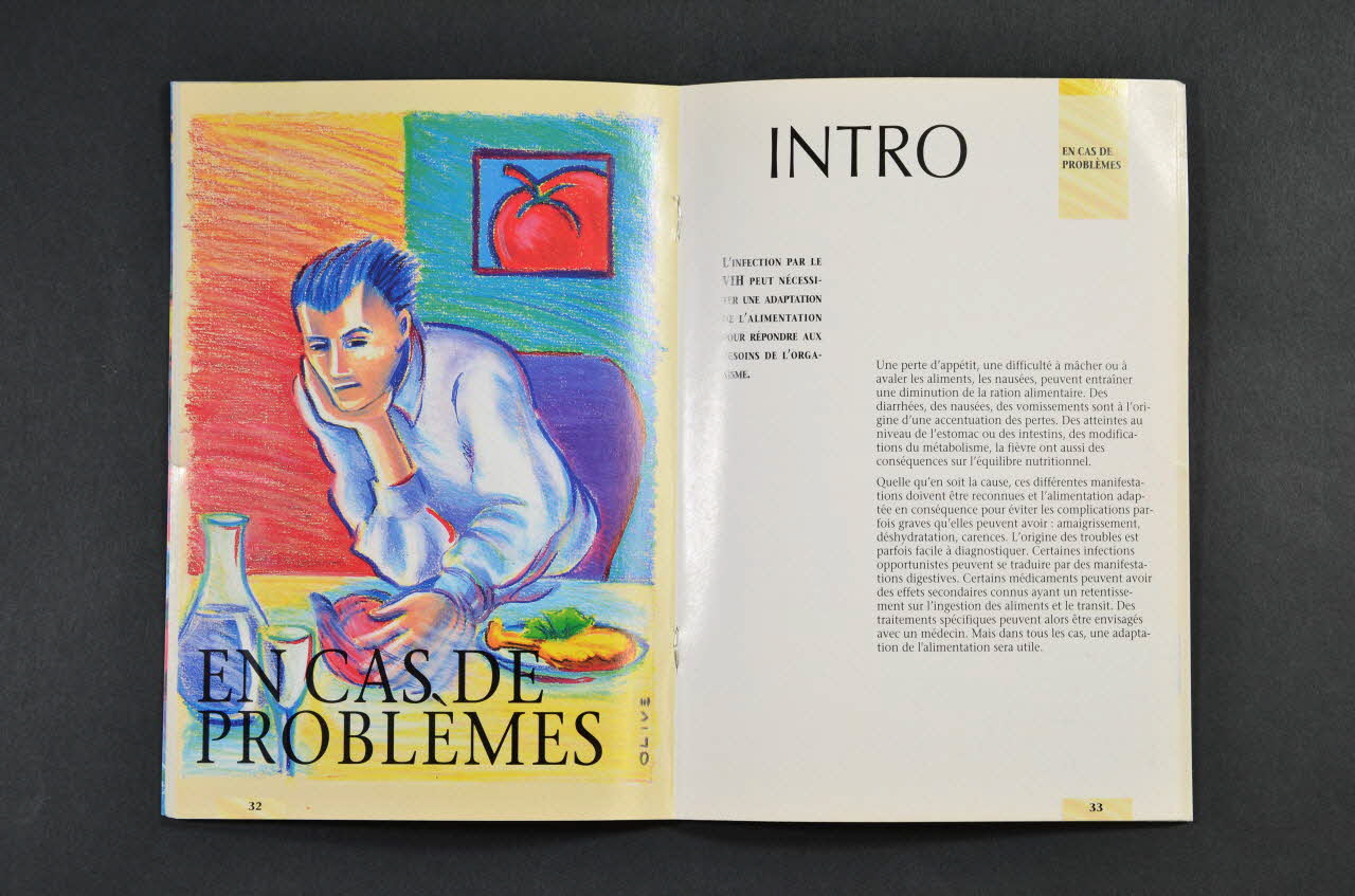 Sommaire // Introduction 3 // Bien manger 6 // Aliments et nutriments 7 // Les 6 groupes d'aliments 8 // Au quotidien 16 // Une organisation simple 17 // Hygiène et sécurité 19 // Que penser des alimentations parallèles? 21 // Les compléments en vitamines et en // minéraux sont-ils nécessaires ? 23 // Prévention des infections 26 // La toxoplasmose 27 // Autres infections liées à l'alimentation 29 // En cas de problèmes 32 // Perte de poids 34 // Manque d'appétit 38 // Nausée 40 // Diarrhée 41 // J'ai du mal à avaler, à mâcher 44 // J'ai de la fièvre 45 // Médicaments et répercussions nutritionnelles 46 // La nutrition de l'enfant séropositif 52 // Lexique 54 // Pour en savoir plus 60 (En page 5), à l'intérieurDécor