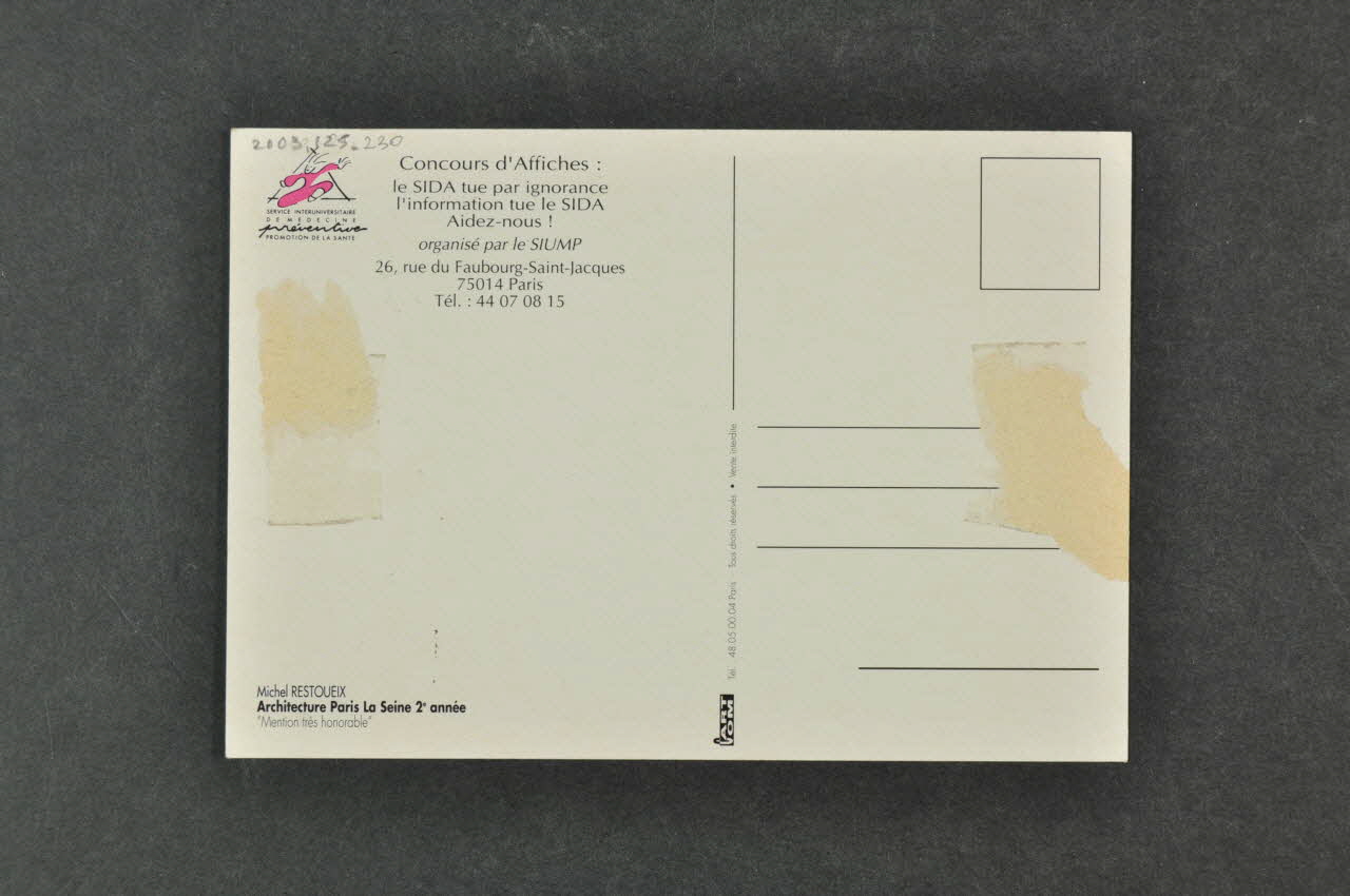Concours d'Affiches (en haut à gauche), versoAdresse