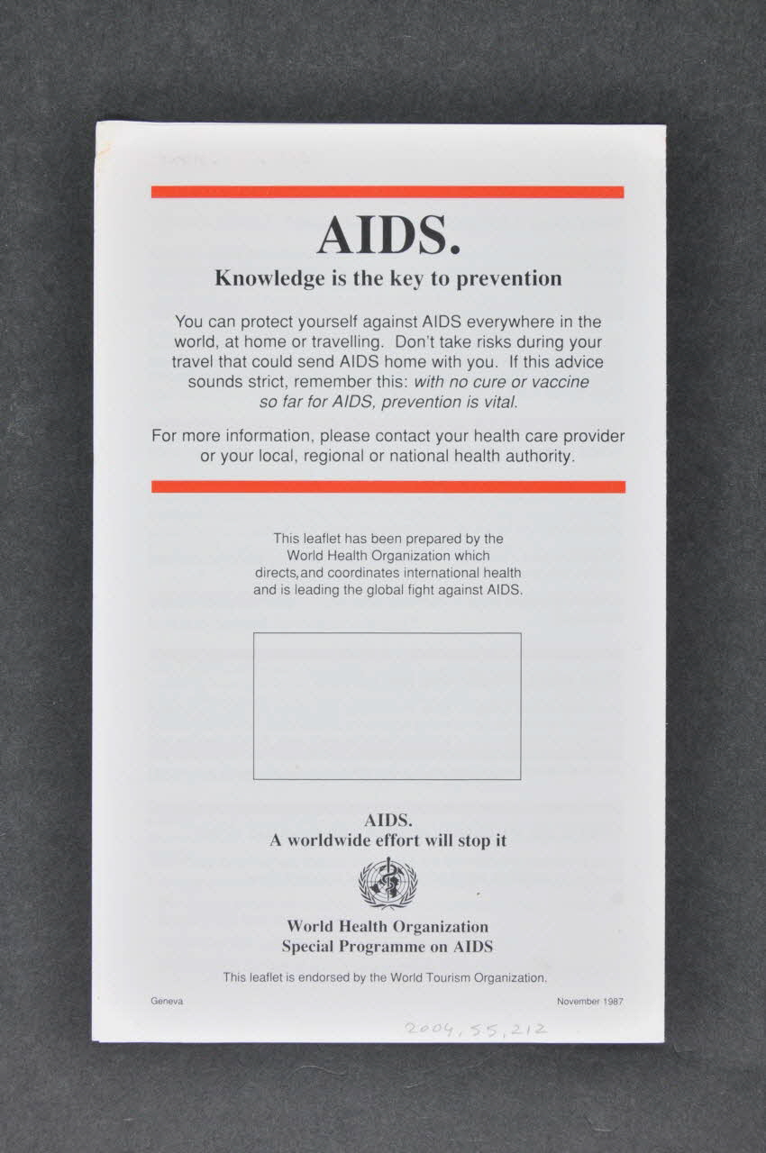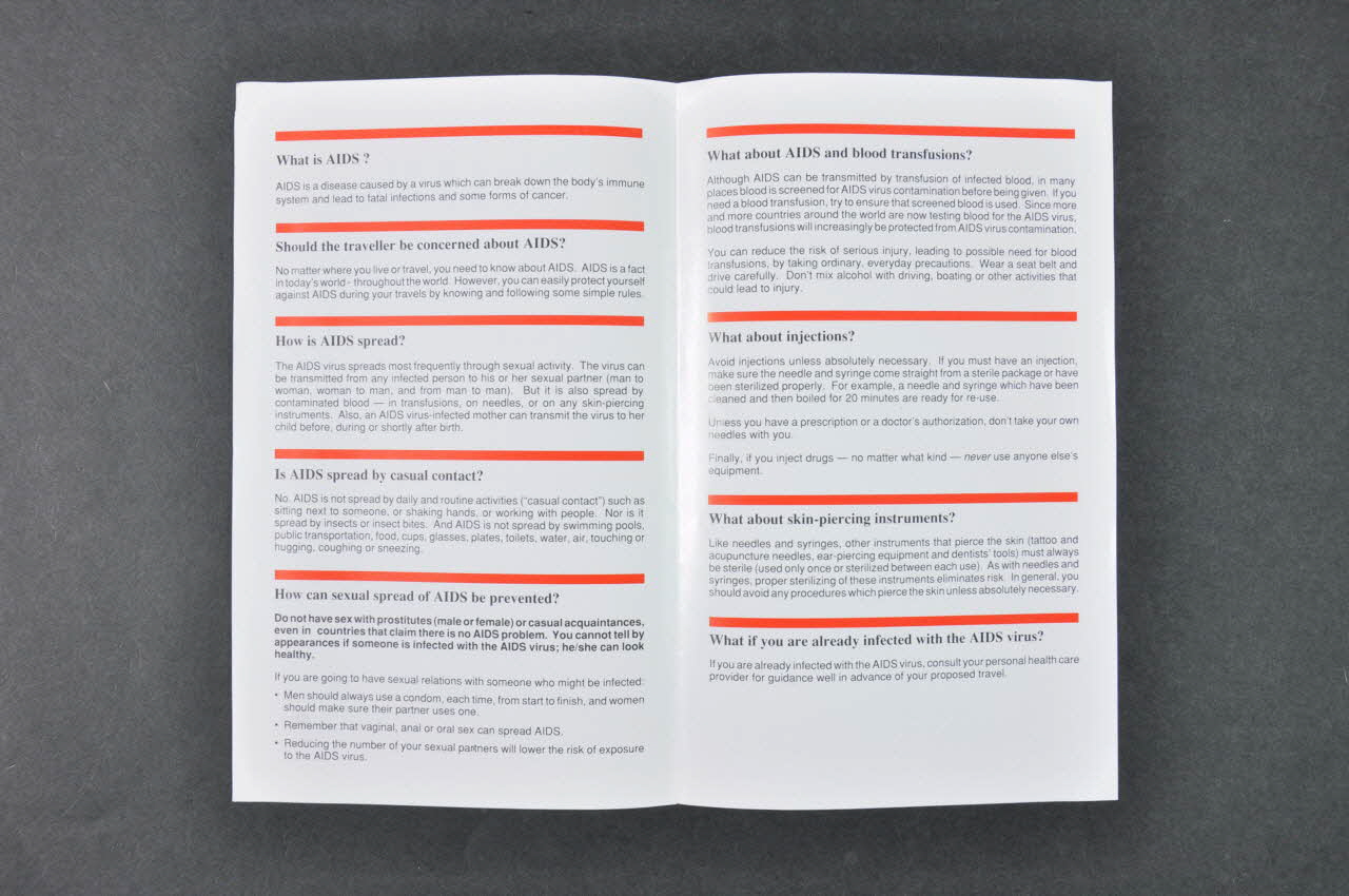 Dépliant, "AIDS Information for travellers" (Sida. Information pour les voyageurs)