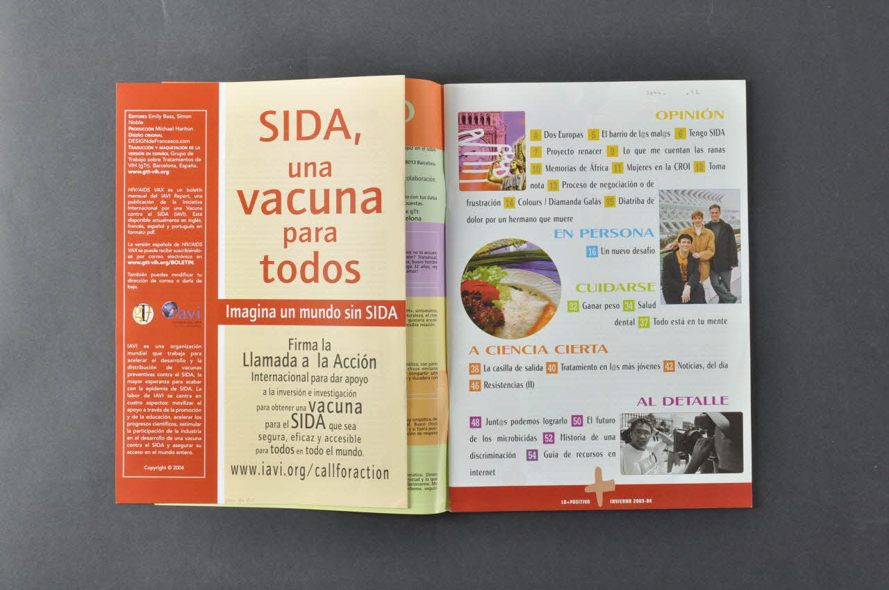 A l'intérieur du numéro est glissé un bulletin de onze pages, rapport de l'IAVI édition spéciale printemps 2004. Le bulletin propose des articles d'information sur les vaccins.