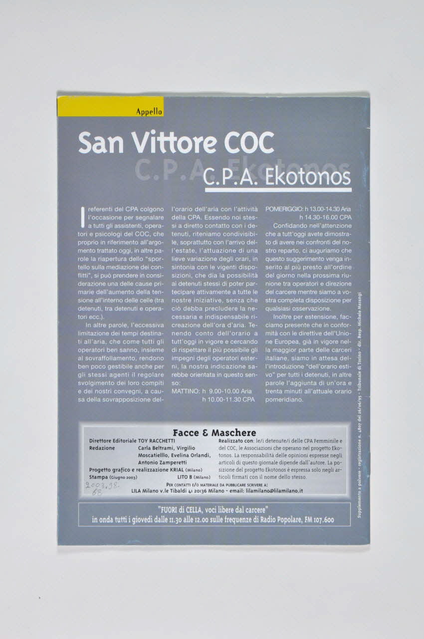 revue, "Facce & Maschere", Facce e maschere, n° 12 Journal des détenus de San Vittore