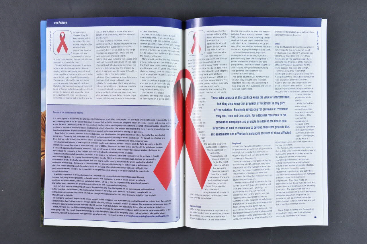 Contents // REGULARS // 05 // +ve comments - yours views // 06 // Globe trotting - round-up of world news // // FEATURES // 08 // The truth behind HIV in Africa - four harrowing personal accounts // 14 // +ve battles - countries affectes by war and natural disasters // 17 // A global problem - there is more to the HIV epidemic than meets the eye // // COLUMNS // 21+ve people - Cheaper drugs // 23 // +ve STIs - gonorrhoea // 25 // +ve focus - spotlight on Derbyshire Positive SUpport // 26 // +ve drug watch - saquinavir (Fortovase® and ®Invirase) // 32 // +ve exchange - how to meet like-minded people fort friendship // // PLUS // 12 // Definitions - words and phrases explained // 28 // Subscriptions - how to order your copy of +ve // 34 // Coming next month - a preview of the next issue (En face du deuxième de couverture), à l'intérieurDécor