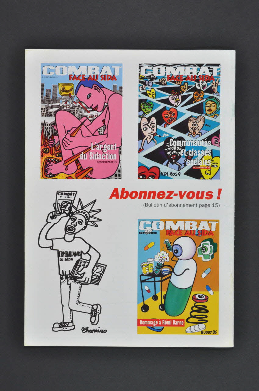 combat // FACE AU SIDA (bord supérieur de la couverture, en blanc et rouge), en hautDate