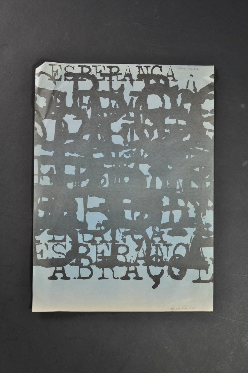 UM // ABRACO. // UMA // ESPERANCA. (Imprimé en capitales blanches sur noir), rectoSous-titre
