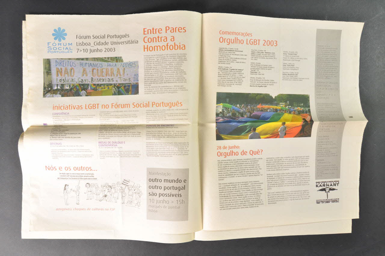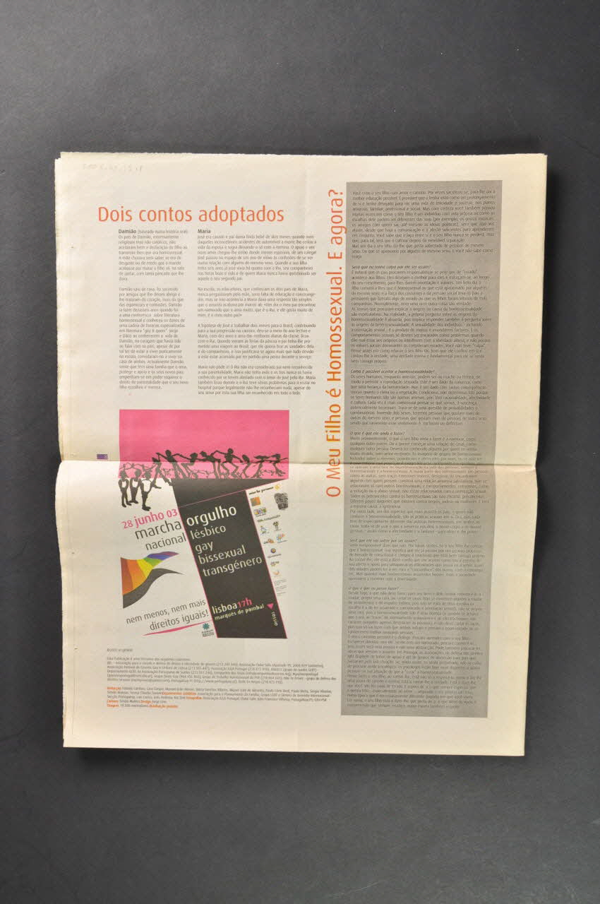 > Manifesto 2003 // Direitos Humanos // Sair do armario // assumir a tua homossexualidade ou bissexualidade // Adopção e Parentalidade // Por um Desejo de (En) Globalização // Faltam Factos às Uniões // abuso sexual ? // (...) // Dois contos adoptados // O Meu Filho é homossexual. E agora ? (au fil des pages)Numéro, date
