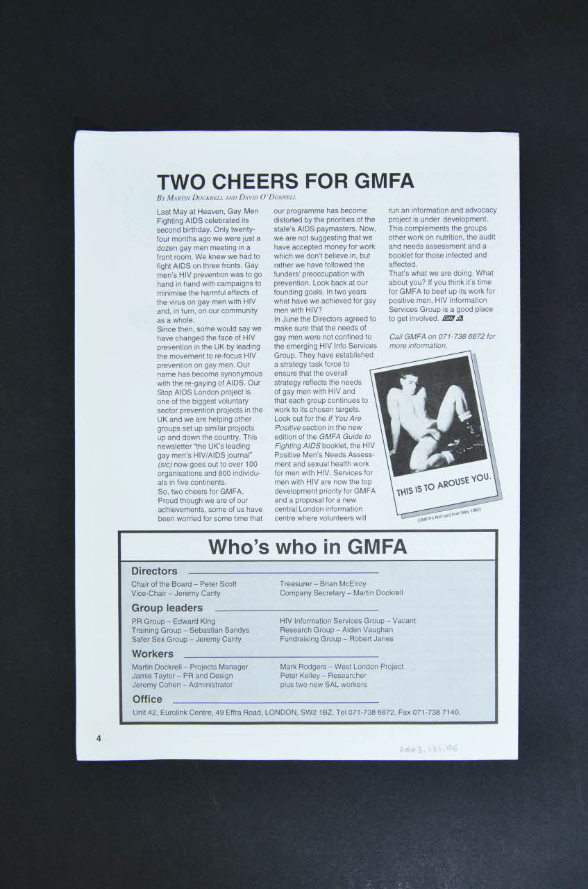 Journal associatif, "Gay Men Fighting Aids : your army" (GMFA : votre armée), "F***sheet", n°spécial, septembre 1994