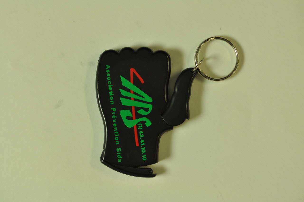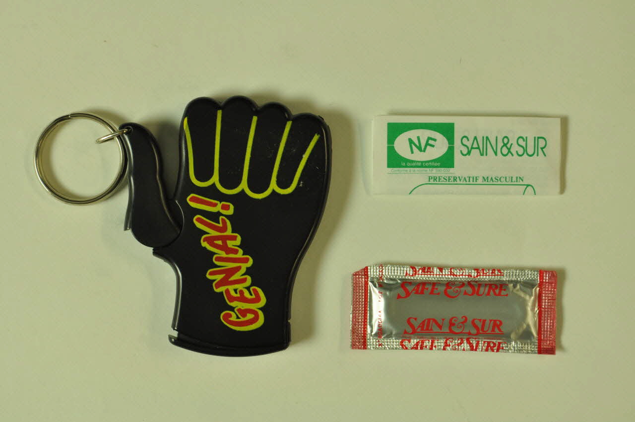 Lieu : FranceDate : 1993Première idée de porte préservatif. APS (association créée par Didier Jayle).