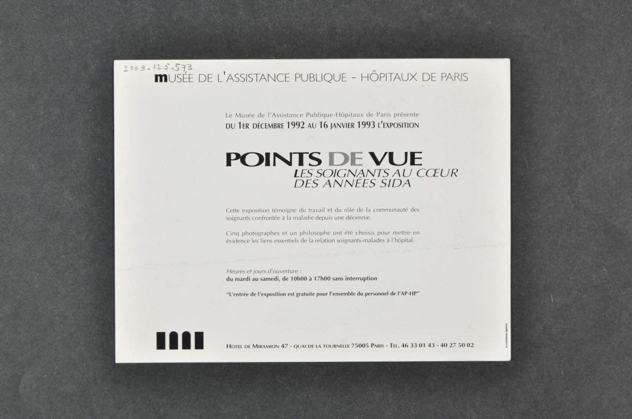 CARTON D'INVITATION, exposition "Points de vue. les soignants au coeur des années sida" (photo de Valérie Winckler)