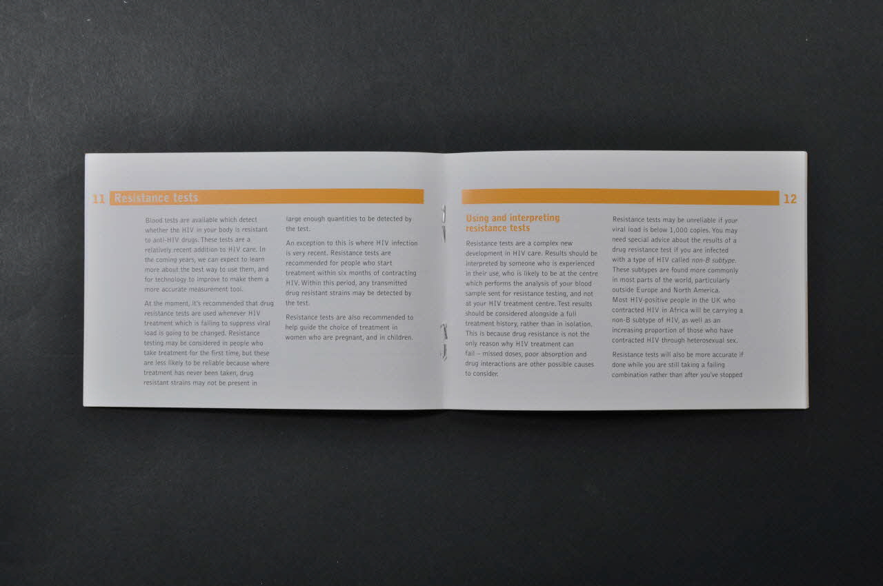 - What is resistance ? // - Reducing the risk of resistance // - Cross-resistance // - Infection with drug resistant HIV // - Resistance tests // - Summary // - Glossary (inscription en blanc sur fond jaune foncé sur la page 3), à l'intérieurAuteur, date