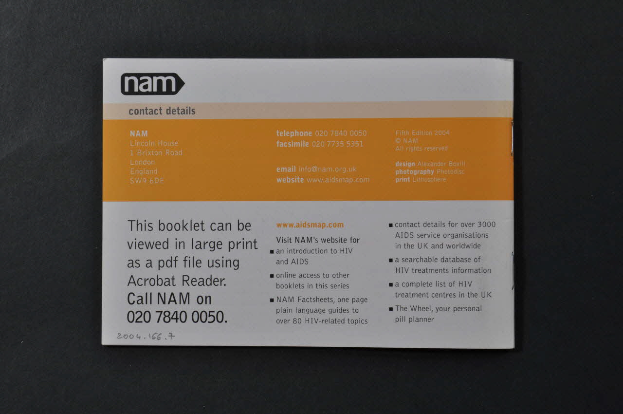 nam (inscription en blanc dans un encadré noir dans le coin supérieur gauche), sur la couverturenam (inscription en blanc dans un encadré noir dans le coin supérieur gauche au dos de la brochure), versoSommaire