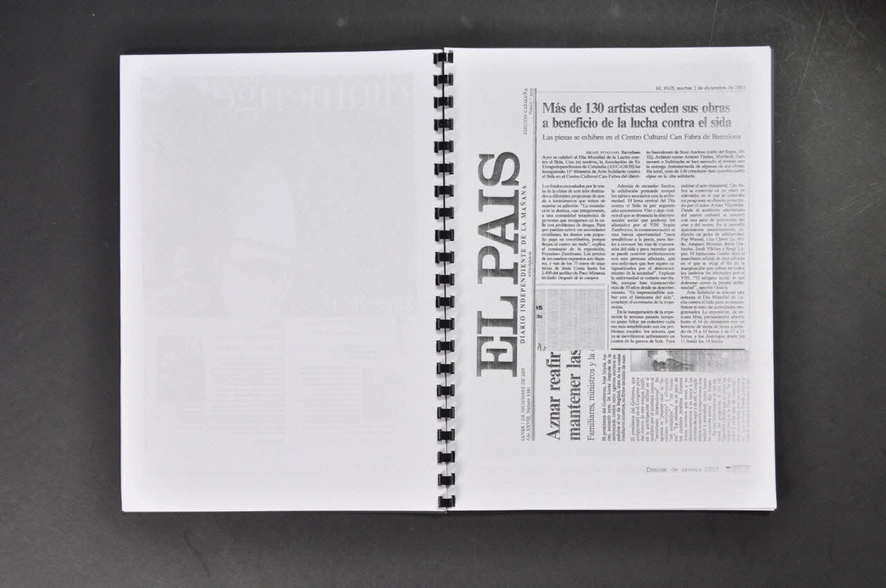 Articles composés essentiellement d'entrefilets sur l'exposition art solidari : agenda culturel de Barcelone, "DDD3, Movin'bcn, La Vanguiardia (2), Barcelona Metropolitan, Aunando esfuerzo, El Periodico dominica, Arte, Tendencias (2), Sortir, El periodico, metro directe, Sitges 2003, El Pais (2), Aldia, Gran Barcelona