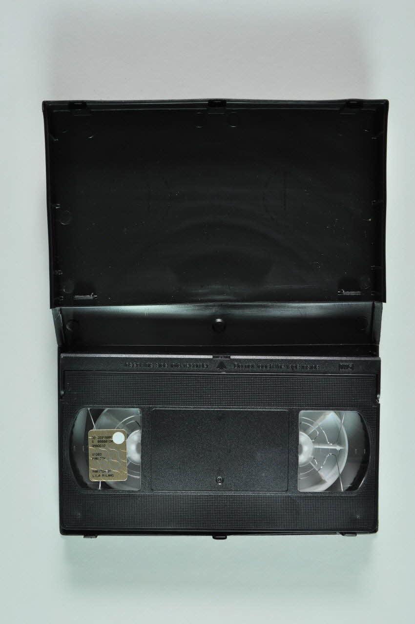 La cassette est en plastique noir, avec sur la gauche au recto un petit autocollant argenté avec inscriptions noires.