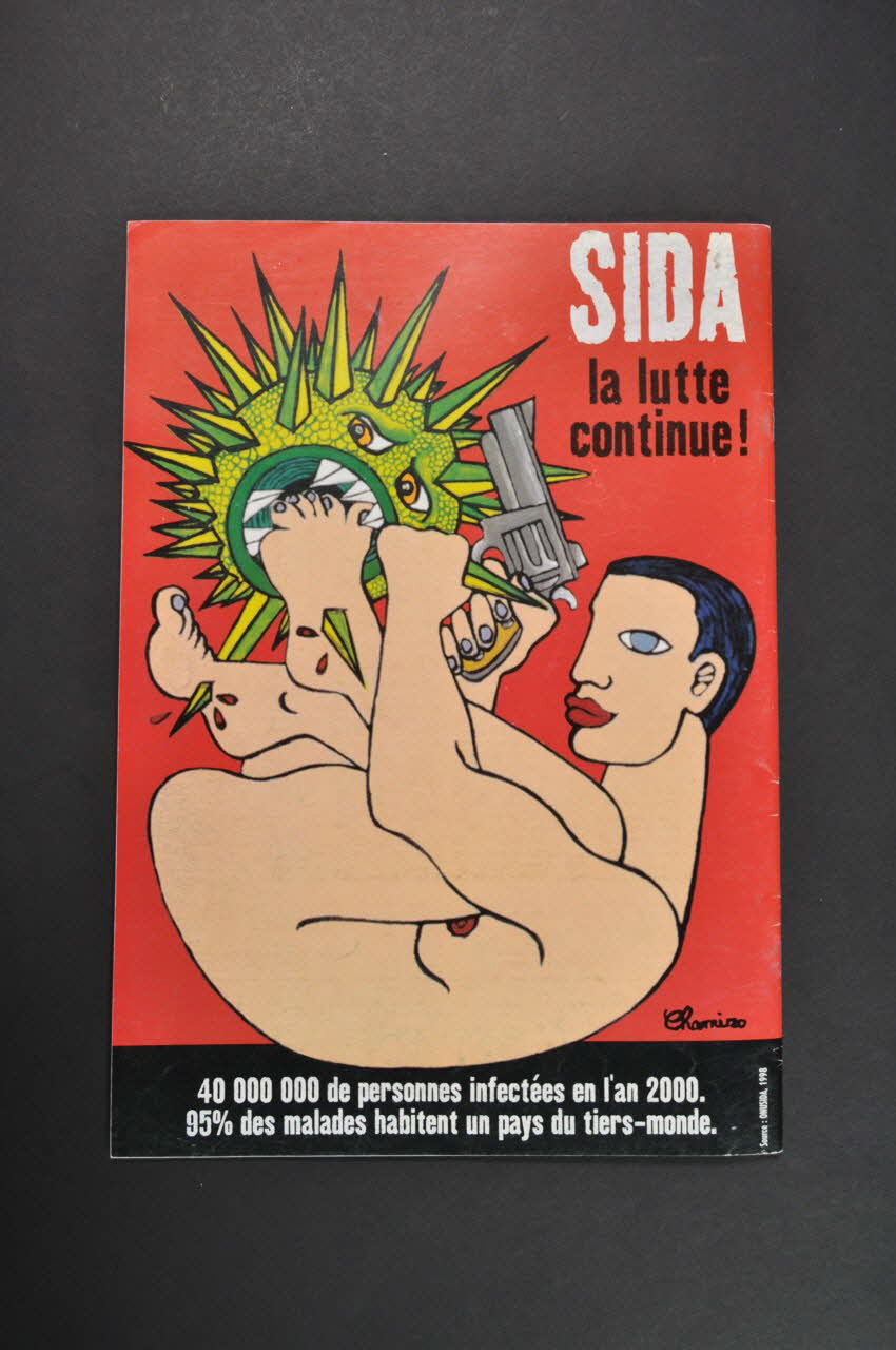 SIDA // la lutte // continue! (Le slogan, en caractères blancs et noirs, est marqué dans le coin supérieur droit.), sur la couvertureNom