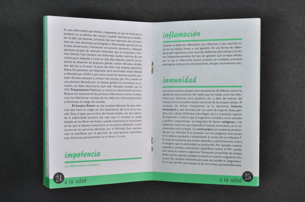 A tu // salud // Guia de salud para gays // de la a a la Z (Le titre est marqué en blanc et vert dans la partie supérieure de la première de couverture.), sur la couvertureNom d'association