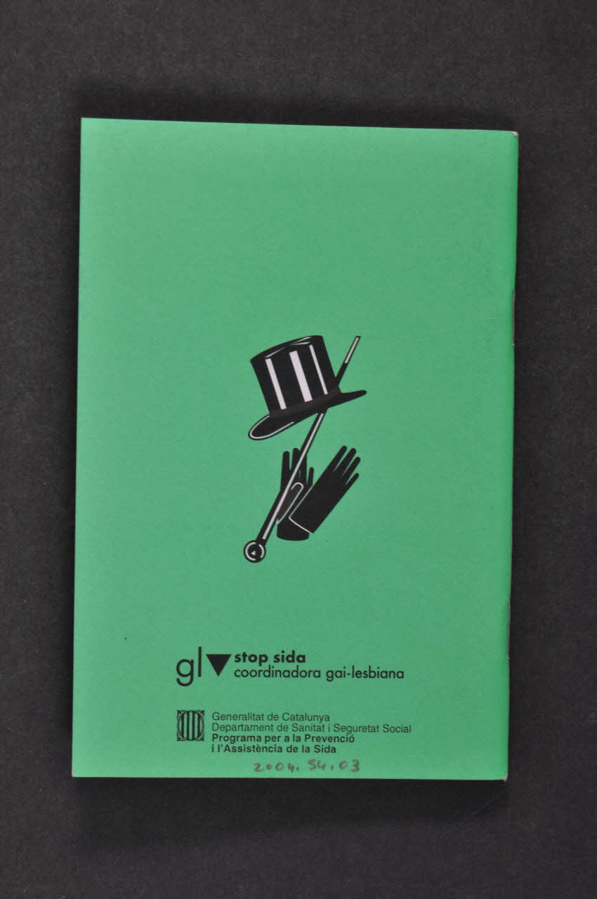 Generalitat de Catalunya // Departament de Sanitat i Seguretat Social // Programa per a la Prevencio // i l'Assistencia de la sida (L'inscription est placée au bord inférieur de la quatrième de couverture. Le logo est formé d'un cercle, rempli de bandes blanches et noires, inséré dans un carré.), sur la couvertureLogo, nom d'association