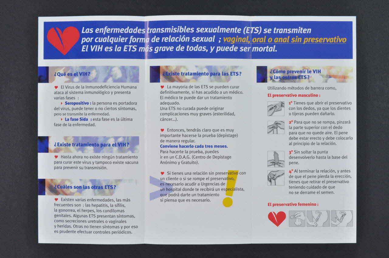- urgence, MST, migrant, sans préservatif, prostitution, dire non, barrière de latex, préservatif, langue espagnole, dépistage, préservatif féminin, lubrifiant, client, information, coeur, préservatif, transmission
