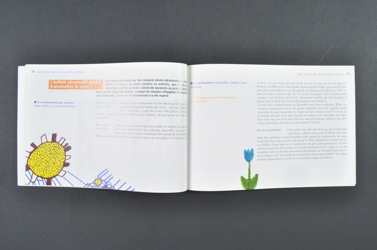 1. S'informer pour accueillir des enfants concernés par le sida // 2. Etre parent et infecté par le VIH // - Une infection chronique : L'épidémie / Le virus / La maladie // - Transmissible mais non contagieuse : Transmission par les sécrétions sexuelles / Transmission par le sang / Transmission lors de la grossesse ou de l'accouchement // - Mieux vaut prévenir : Prévention de la transmission sexuelle / Prévention des risuqes liés aux produits sanguins / Réduction des risques chez les usagers de drogues // - Dépister, mais pas n'importe comment ! : Les tests de dépistage / Un résultat négatif / Un résultat positif // - Contamination, séropositivité, maladie : Période de séroconversion / Période de séropositivité asymptomatique / Premiers symptômes / le sida // - La prise en charge : Préserver la qualité de vie / Les traitements / L'accompagnement / Préparer l'avenir des enfants // 3. Enfants concernés par le VIH // - Quels risques pour l'enfant à naître ? : L'évaluation du risque / La contamination / L'allaitement maternel // - Réduire l'anxiété et l'attente : Séropositif, oui, mais contaminé ? / Les moyens de diagnostic / Séronégatif, il reste concerné // - Qui sera vainqueur, le VIH ou la vie ? : Forme précoce et grave / Forme avec encéphalopathie /Forme prolongée // - Traiter pour prévenir : Prévenir les infections respiratoires / Lutter contre le virus / Lutter contre les infections / Le suivi / Le dialogue avec l'enfant // - Jusqu'au bout, accompagner la vie : La douleur / Nutrition et soins quotidiens / Prise en charge à domicile // 4. Des lieux de vie ouverts à tous // - L'enfant séropositif peut-il transmettre le virus ? : A propos des jeux et des calins / Des craintes non fondées / Les mesures élémentaires d'hygiène // - La vie en collectivité est-elle dangereuse pour l'enfant séropositif ? : Crèche et assistante maternelle / Ecole // 5. Accueillir l'enfant ... et ses parents // - Mères vulnérables et périodes sensibles : L'annonce de la séropositivité / Le moment de l'accouchement / La période post natale / L'annonce du diagnostic à l'enfant // - Mères vulnérables et modes de contamination : Contamination liée à l'usage de drogues / Mère d'origine africaine / Contamination due à une transfusion // - Protéger l'enfant pour qu'il s'épanouisse : Un enfant fragilisé / Le danger de surprotection // - Accueillir en toutes circonstances : Les familles d'accueil / Le décès d'un des parents / L'adoption ou l'accueil sous tutelle / L'accueil en institution // - L'écoute et le soutien : Ecouter / Respecter / Soutenir // - Aides sociales : L'allocation d'éducation spécialisée / L'allocation adulte handicapé / Action éducative en milieu ouvert / Aides ménagères / Aides ponctuelles // 6. Secret professionnel ou secret de polichinelle ? // - Un gage de confiance : Une obligation légale / Le devoir de discrétion / Limites légales du secret / Limites souhaitables / // - Le secret partagé : Le personnel médical / Les autres intervenants / Tutelle légale / Les familles d'accueil // - Modifier certaines habitudes : Les risques d'indiscrétion / Lieux d'accueil publics et collectifs / Accueil en famille / Le secret appartient aux parents. // - Circulaire ministérielle n° 92-124 du 29 juin 1992 : Accueil des enfants porteurs du VIH dans les établissements publics et privés sous contrat des premiers et seconds degrés. // - Précautions dans les lieux de soin / Principaux procédés d'inactivation du VIH (pages 4 à 6), à l'intérieurTitre
