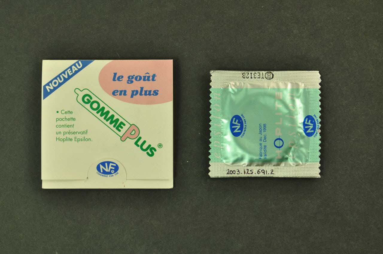 .1 : Il s'agit d'un étui carré en papier rigide et en deux volets. Deux languettes permettent d'y insérer le préservatif. Il est imprimé à l'extérieur en bleu, rose et vert et à l'intérieur en bleu. Les deux faces externes comportent des inscriptions et une illustration représentant deux lapins au jeu du relais (un étui de préservatif fait office de témoin). Les deux faces internes font référence quant à elles, à l'emploi du produit grâce à cinq schémas légendés.