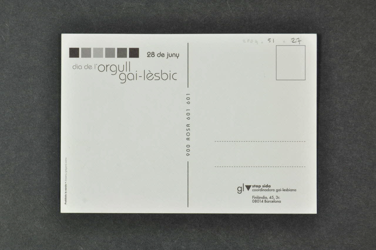 Au milieu de la carte, se situent une fine ligne noire et un numéro de téléphone, en petits caractères noirs, à la verticale.