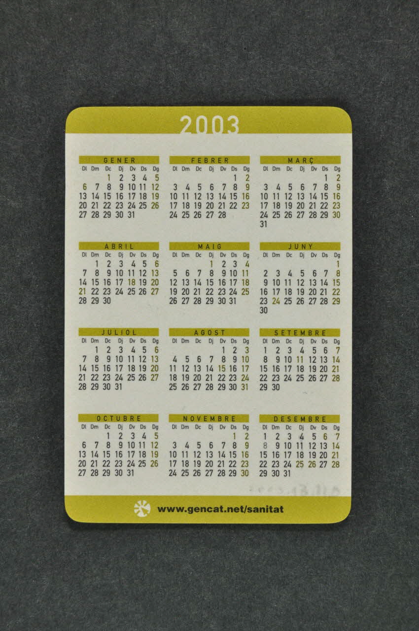 www.gencat.net/sanitat (inscription en noir sur fond vert au milieu en bas), versoDate
