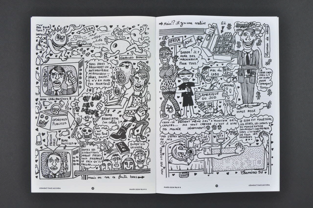 COMBAT // FACE AU SIDA (en gris et rouge, en haut de la première de couverture), en hautSignature