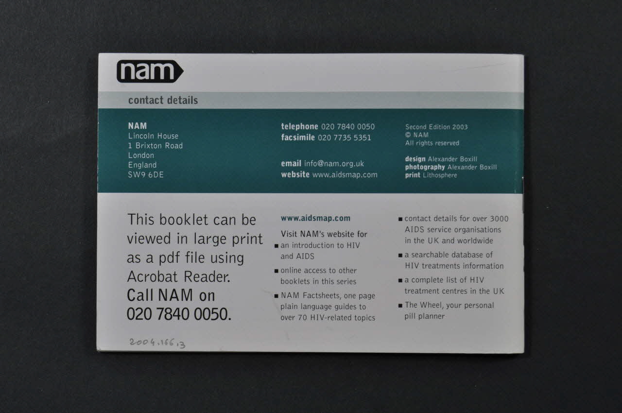 Written and produced by // Michael Carter, NAM // Second edition 2003 (inscription en blanc sur fond vert foncé dans le coin supérieur gauche sur la page au dos de la couverture), à l'intérieurTexte