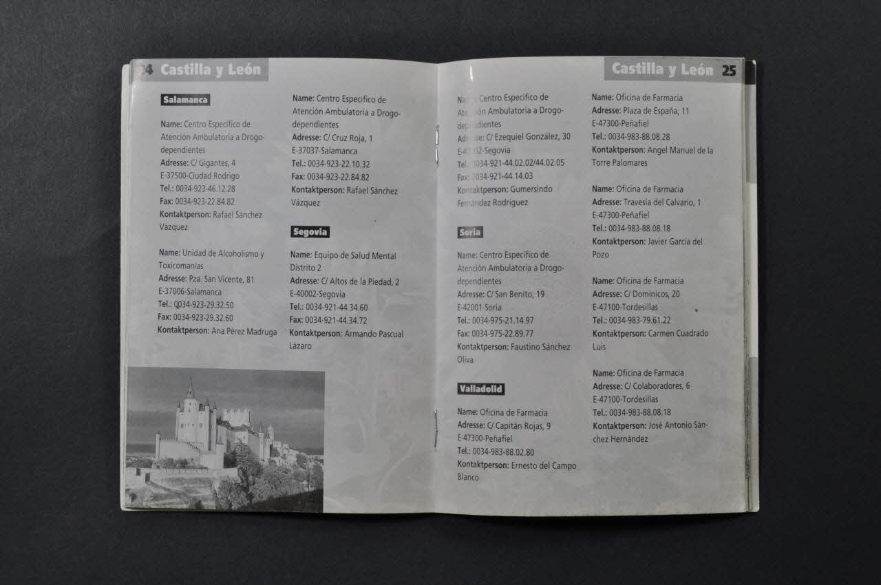 Pour chaque province et par nom de ville, la brochure propose les nom et coordonnées des "Centres de drogodépendance" ou d'autres associations liées à l'usage de la drogue.