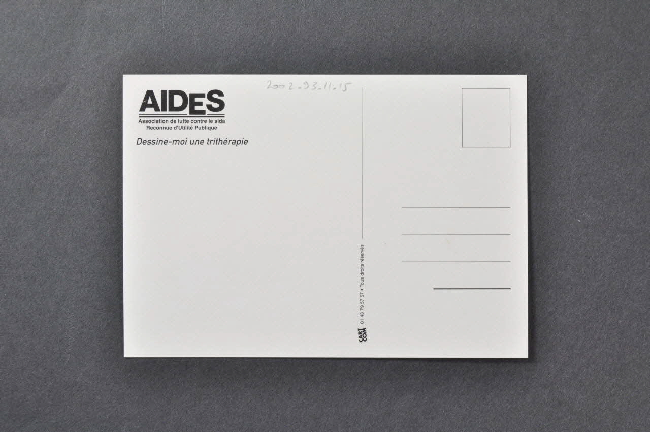 AIDES // Association de lutte contre le sida // Reconnue d'Utilité Publique // // Dessine-moi une trithérapie (angle supérieur gauche), versoSignature, auteur