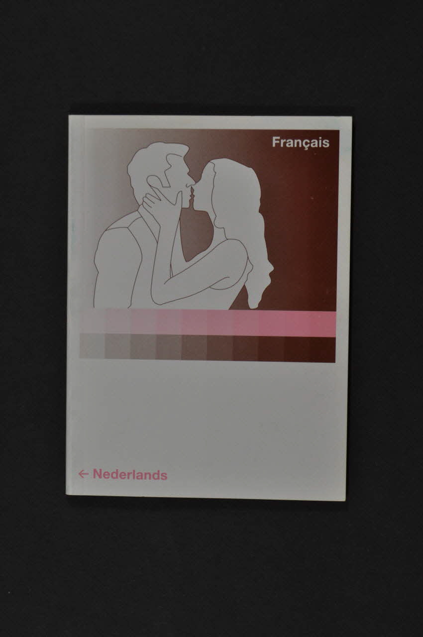 Sur la couverture du côté français se trouve un dessin en blanc représentant un couple en train de s'embrasser, vu de profil. Cette image se trouve en haut de la couverture sur un fond marron. Sous cette image figurent une bande rose et une bande marron. La partie basse est blanche. Une inscription blanche se trouve dans le coin supérieur droit et une inscription rose dans le coin inférieur gauche. L'intérieur du côté français est constitué d'inscriptions en rose, blanc et marron sur fond marron ou blanc. Ces inscriptions sont accompagnées de dessins blancs du même couple et de schémas explicatifs. Sur la couverture du côté néerlandais se trouve le même dessin en blanc représentant un couple en train de s'embrasser, vu de profil. Cette image se trouve en haut de la couverture sur un fond rose. Sous cette image figurent une bande marron et une bande rose. La partie basse est blanche. Une inscription blanche se trouve dans le coin supérieur droit et une inscription marron dans le coin inférieur gauche. L'intérieur du côté néerlandais est constitué d'inscriptions en rose, blanc et marron sur fond rose ou blanc. Ces inscriptions sont accompagnées de dessins blancs du même couple et de schémas explicatifs.Inscriptions