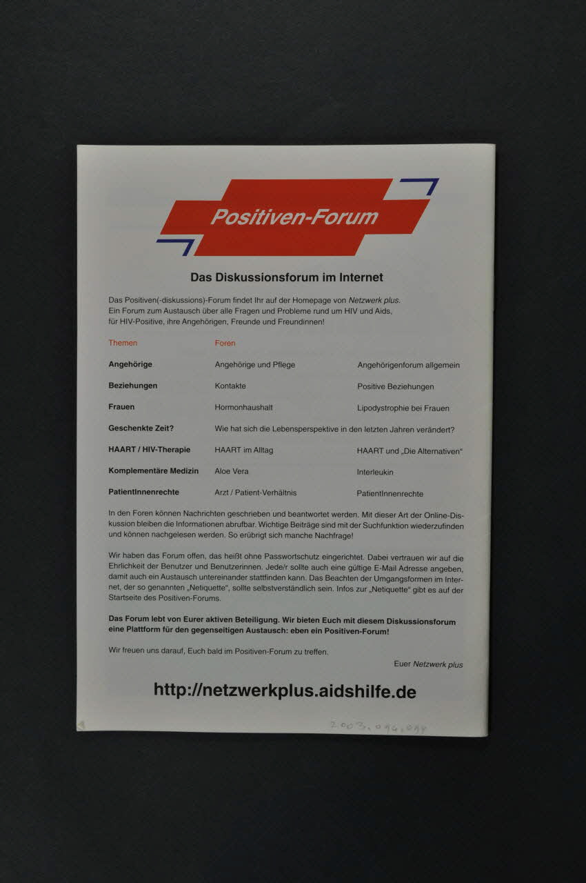 http://netzwerkplus.aidshilfe.de (En bas du verso, se trouve une adresse internet.), versoSous-titre