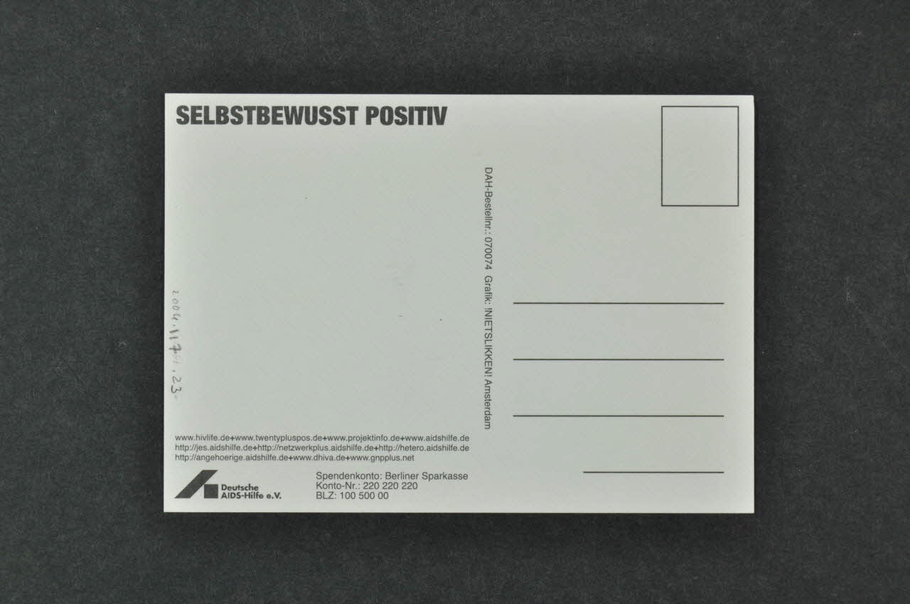 carte postale, "Ich bin wer ich bin HIV +."(Je suis qui je suis)