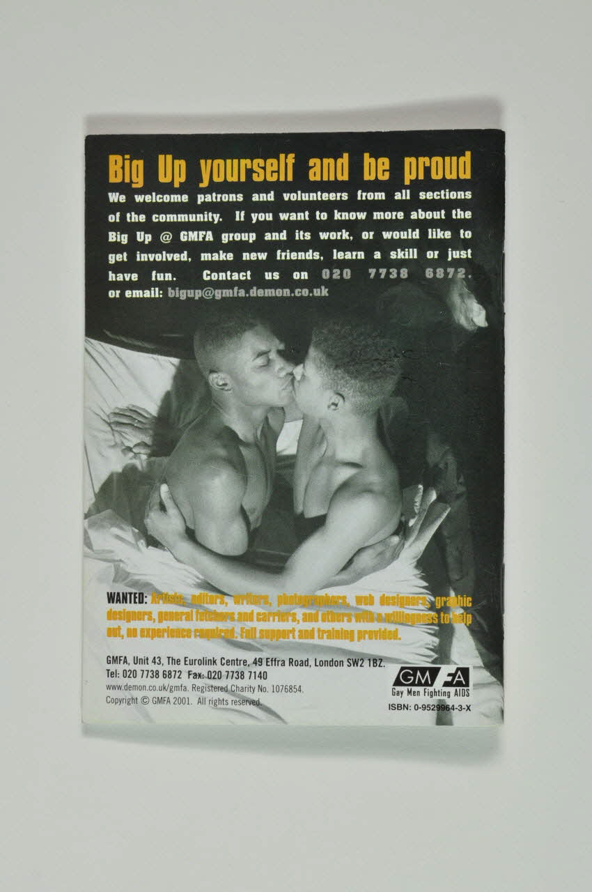 Big Up yourself and be proud // We welcome patrons and volunteers from all sections // of the community. If you want to know more about the // Big Up @ GMFA group and its work, or would like to // get involved, make new friends, learn a skill or just // have fun. Contact us on 020 7738 6872. // or email : bigup@gmfa.co.uk (inscriptions en orange, blanc et gris au dos de la couverture), rectoblack history month special (inscription jaune et blanche sur la page de couverture en haut à droite), en hautSous-titre
