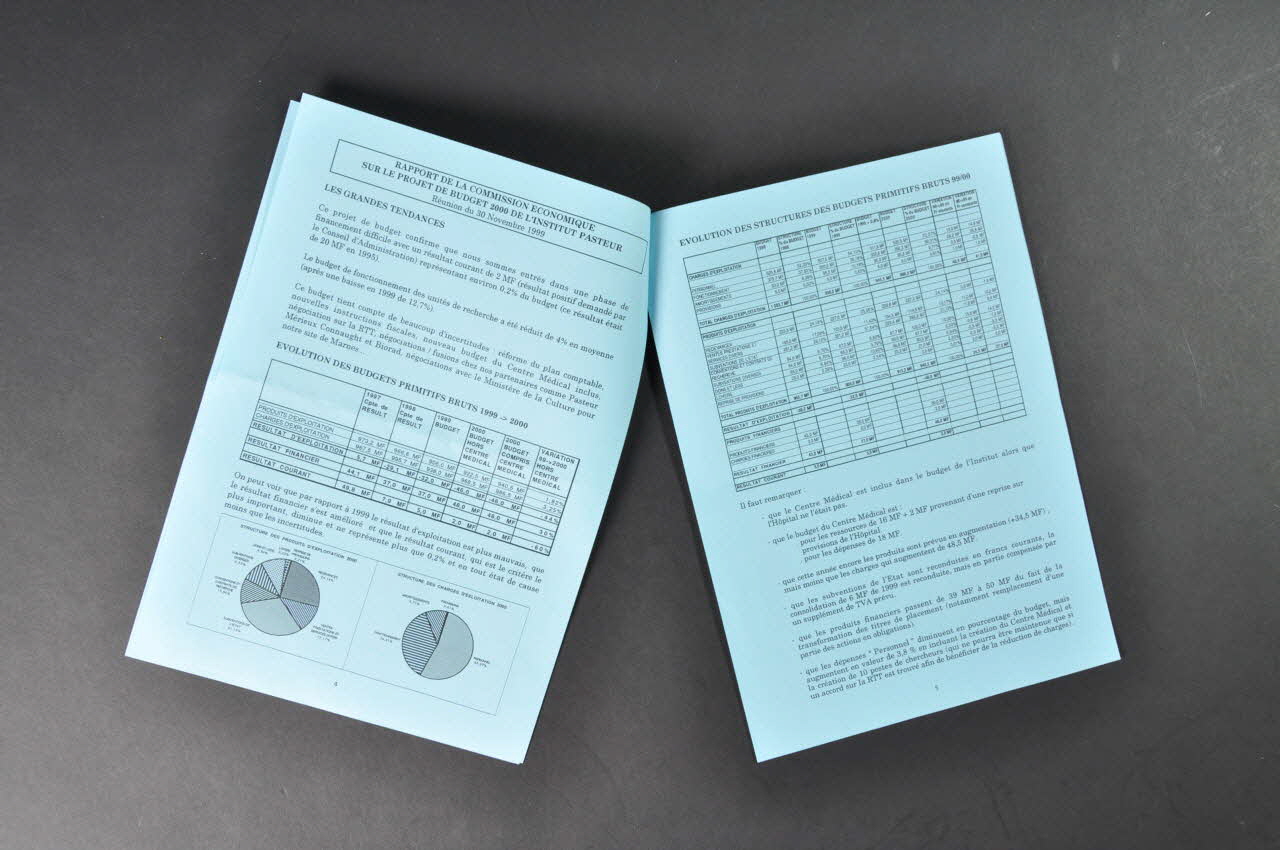 Hôpital // NON application des mesures salariales // Modification du statut des ingénieurs de recherche // Formation professionnelle // Révision des tarifs du restaurant d'entreprise // RAPPORT DE LA COMMISSION ECONOMIQUE SUR LE PROJET DE BUDGET 2000 DE L'INTITUT PASTEUR - Réunion du 30 novembre 1999. (au fil des pages)Décor