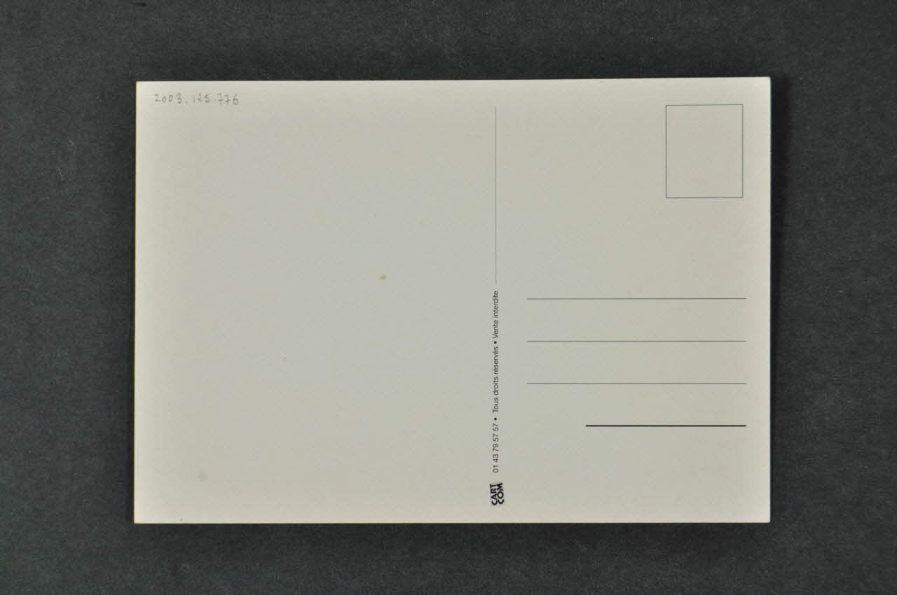 Un logo est imprimé le long de la bordure inférieure en bleu, noir et blanc. Le tout est imprimé au format portrait. Au verso, la moitié gauche présente un espace pour la correspondance. La moitié droite porte quatre lignes horizontales, imprimées en noir au-dessous d'un cadre noir, et correspondant à l'emplacement du timbre et du/des destinataire(s).Inscriptions