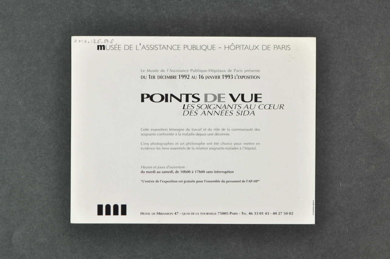CARTON D'INVITATION, exposition "Points de vue. les soignants au coeur des années sida" (photo de Manuel Ariès)