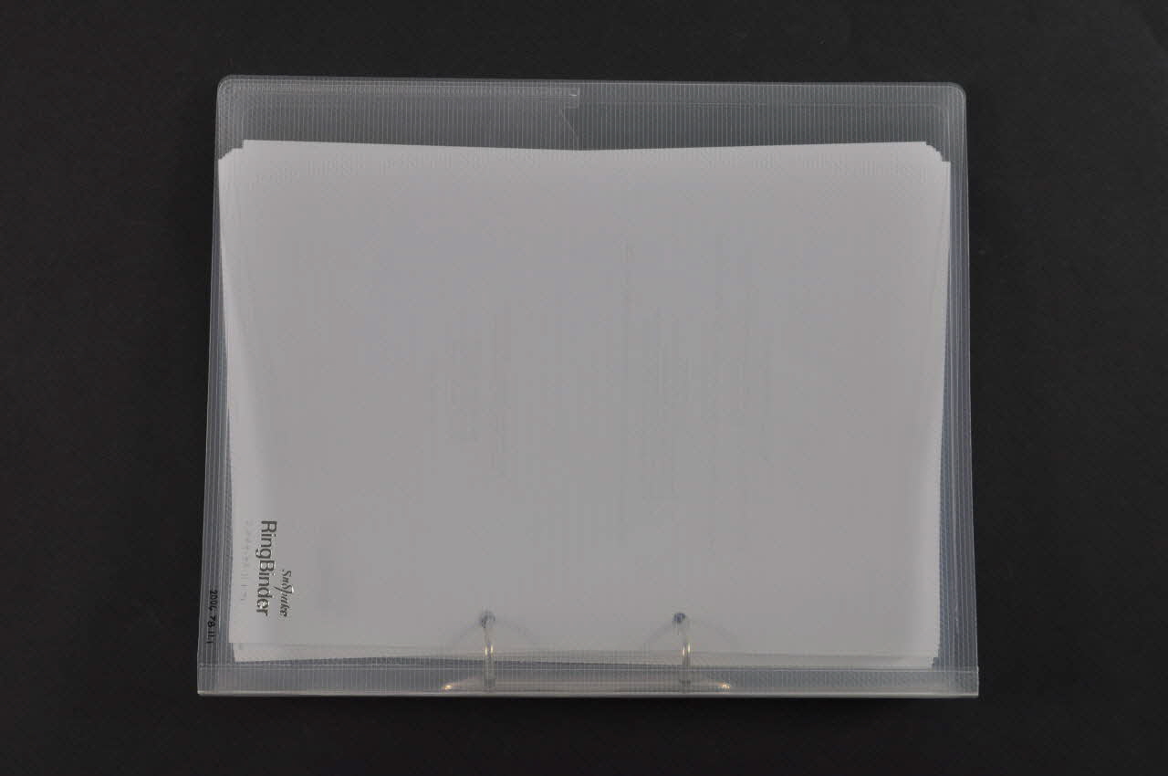 La couverture du classeur présente deux pochettes en plastique, collées sur l'intérieur.Inscriptions