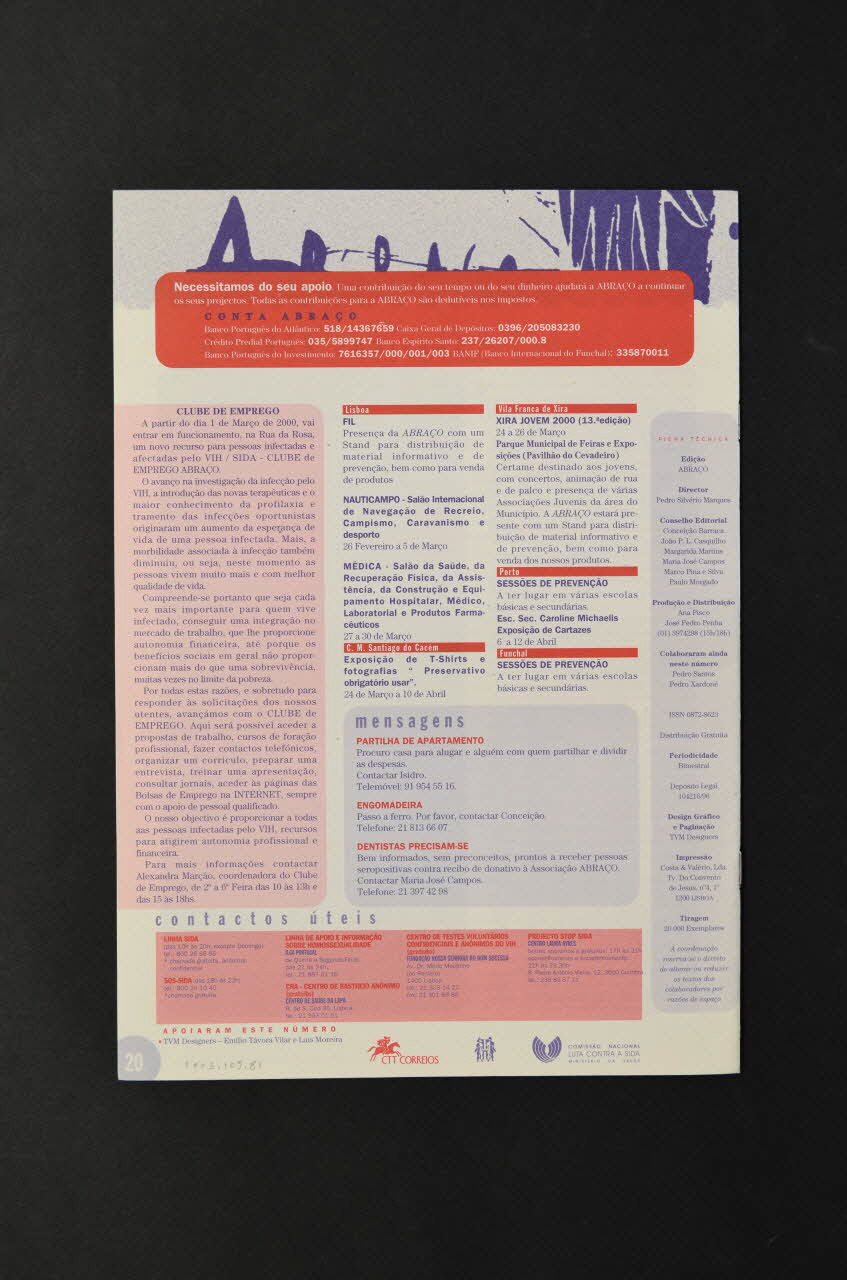 revue, Abraço. Um Boletim para pessoas infectadas e afectadas pelo VIH /SIDA Année 4 , mars - avril 2000 n°4 (Un bulletin pour les personnes infectées et affectées par le VIH/Sida)