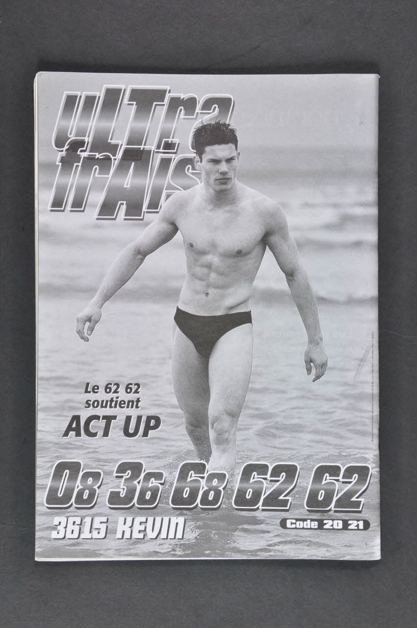 Cette revue est la lettre mensuelle n°59 de l'association Act Up-Paris et est composée de trente-deux pages reliées entre elles par des agrafes. La couverture comprend le contour d'un visage tracé en gros pointillés noirs ; ce dernier est placé au centre et contient un point d'interrogation. Autour et sur toute la hauteur de la page, du texte est imprimé en français en noir sur blanc. Dans le haut, un titre, le nom de la revue, le numéro et la date sont présents. Un petit bandeau noir placé en diagonale en haut à droite contient du texte imprimé en blanc. Le dos comprend une photographie noir et blanc pleine page d'un homme en slip de bain les pieds dans l'eau. Du texte et un numéro de téléphone sont imprimés dans le haut et dans le bas. Un sommaire est présent sur la page 2. A l'intérieur, le texte est imprimé en noir sur blanc ou en blanc sur noir. Certaines pages comprennent des encadrés, des illustrations ou des photographies, toujours en noir et blanc. Au centre de la revue, quatre pages sont imprimées en noir sur du papier jaune plus épais et correspondent au bulletin mensuel destiné aux personnes atteintes par le VIH.Inscriptions