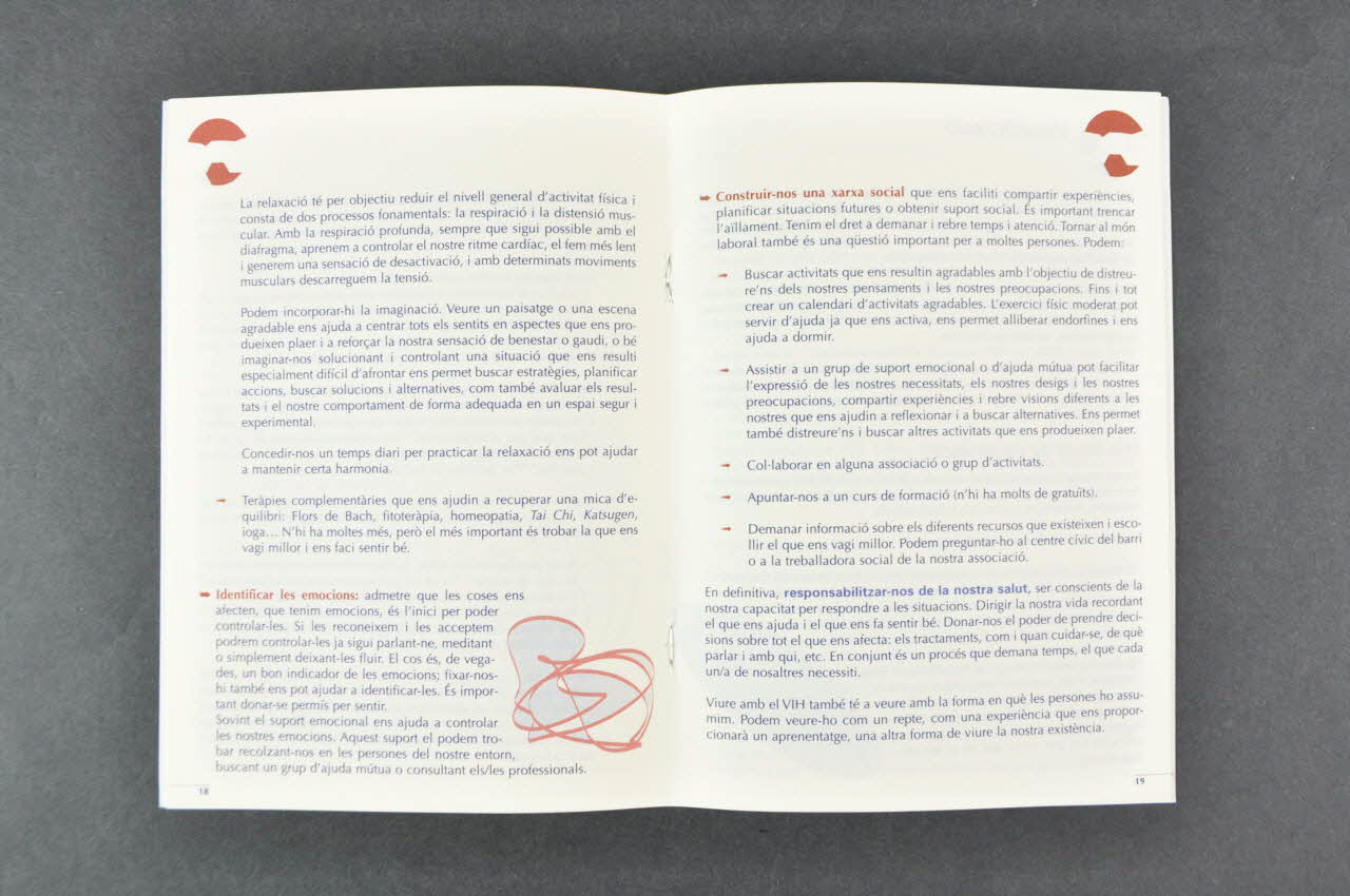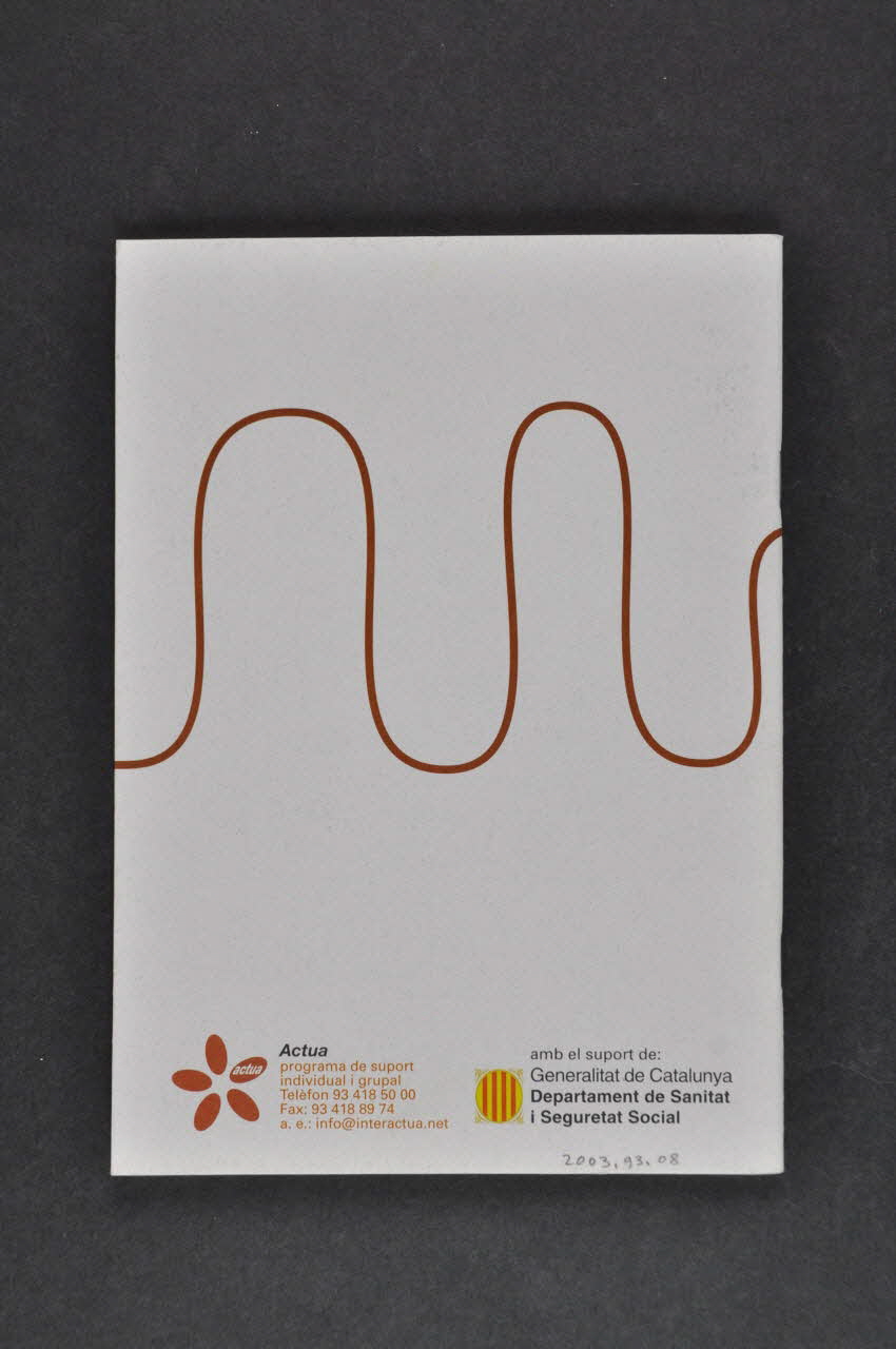 Le dos est sur fond gris et est illustré au centre, ligne courbe brune et porte, en en bas, les logos d'Actua et de la Generalitat.