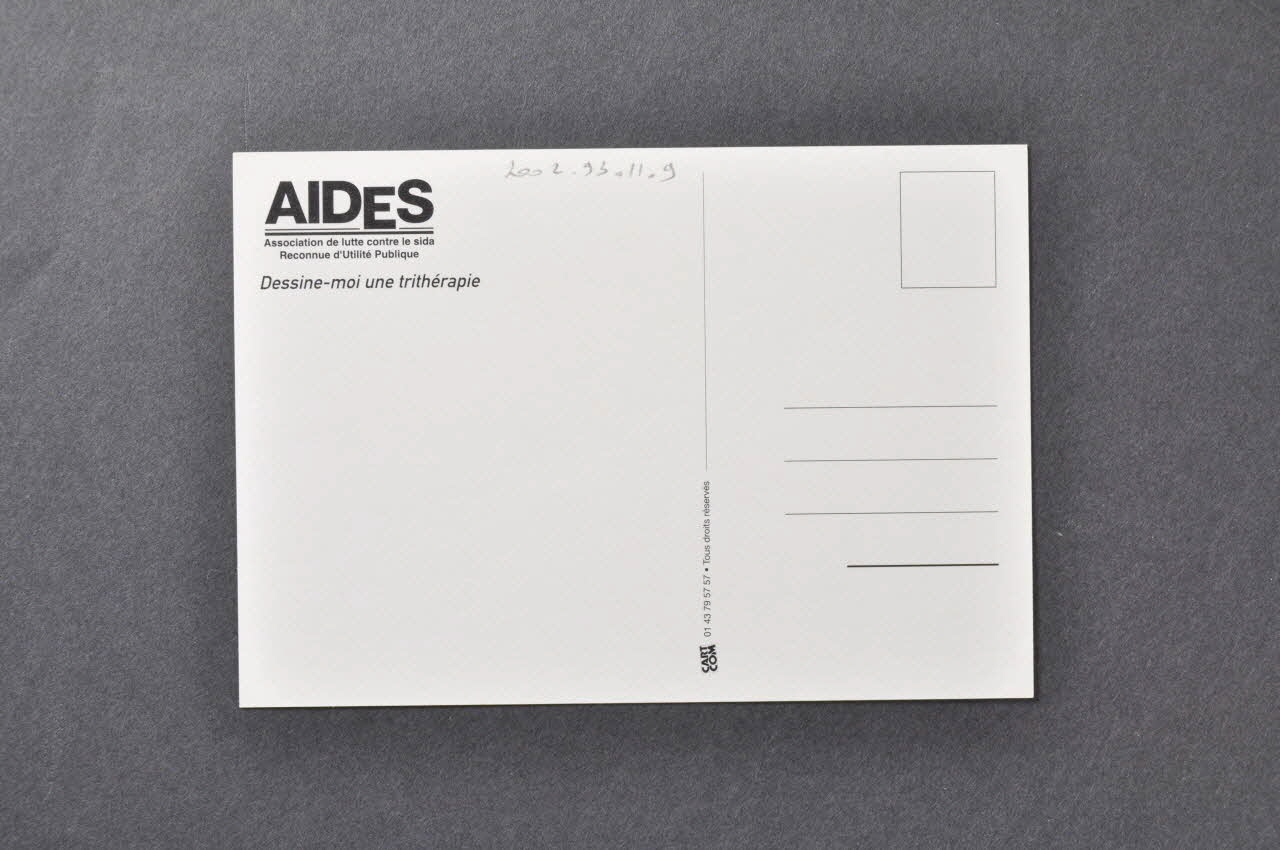 AIDES // Association de lutte contre le sida // Reconnue d'Utilité Publique // // Dessine-moi une trithérapie (angle supérieur gauche), versoSignature, auteur