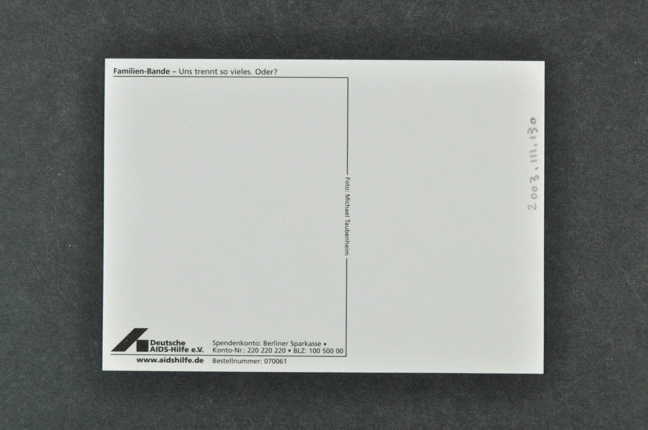 carte postale, "Familien bande - Uns trennt so vieles. Oder?" (La bande familiale. Nous ???)
