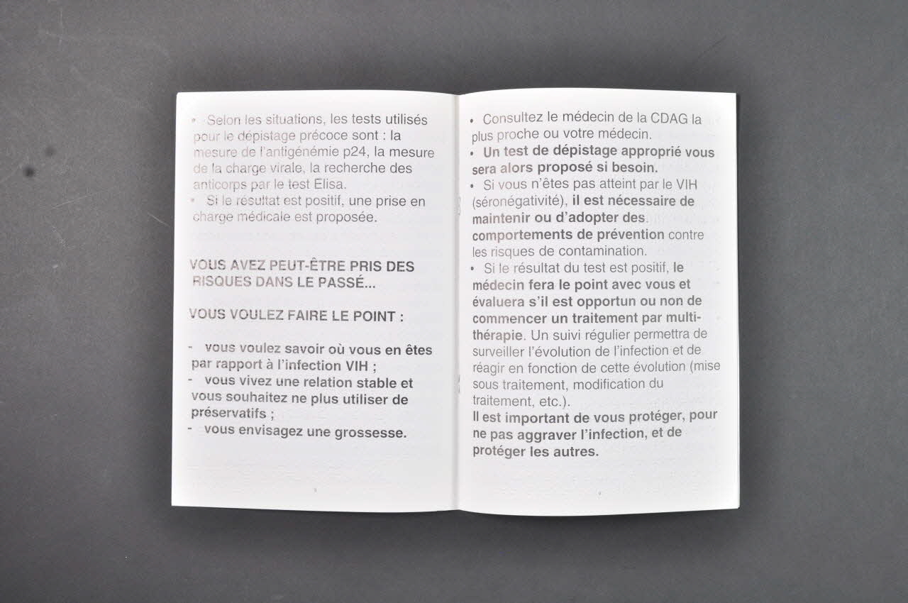 Brochure en braille, "Sida et dépistage du VIH. Savoir vite... pour mieux agir"