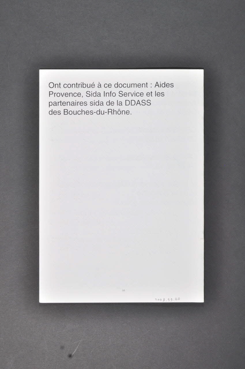 Ont contribué à ce document : Aides // Provence, Sida Info Service et les // partenaires sida de la DDASS // des Bouches-du-Rhône., versoDate