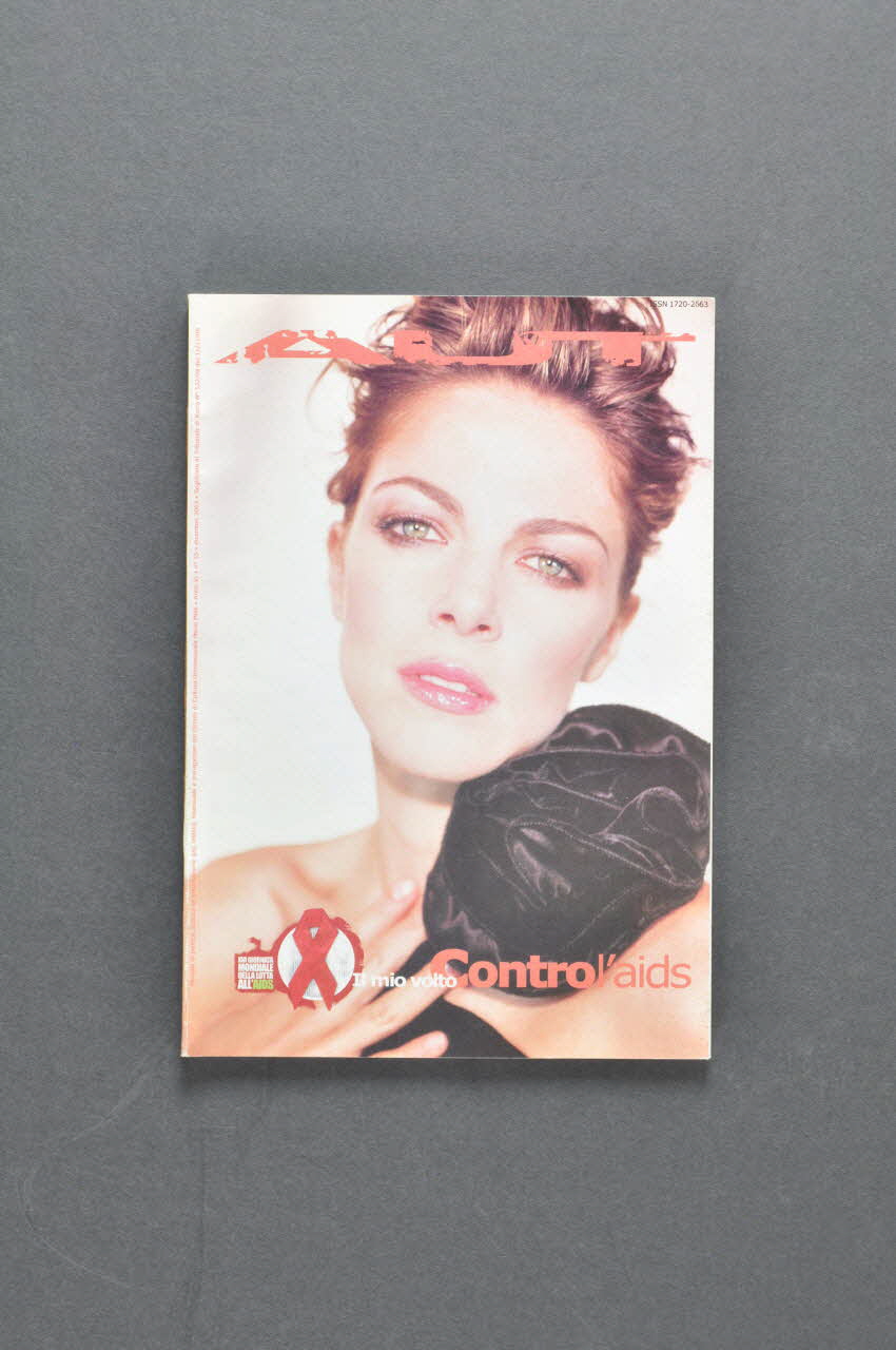 La couverture est composée autour d'un visage de femme : l'actrice Claudia Gerini, marraine de la journée de lutte contre le sida. En haut, en capitales fantaisie roses, le nom de la revue. En bas, un petit ruban rouge et à côté, une indication sur la XVIème journée mondiale de la lutte contre le sida. Et, en caractères blancs puis roses, le sous-titre : "Il mio volto contro l'Aids" (Mon visage contre le sida).