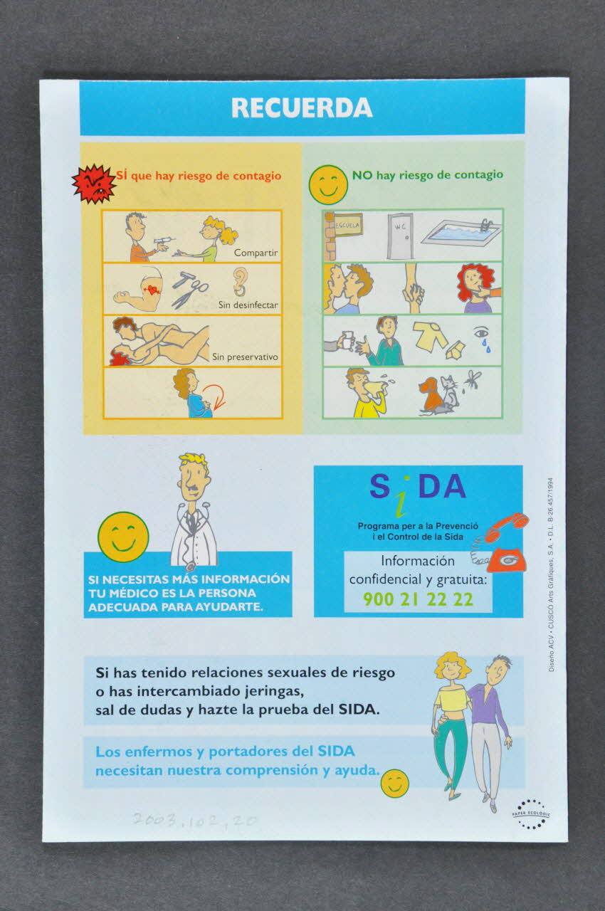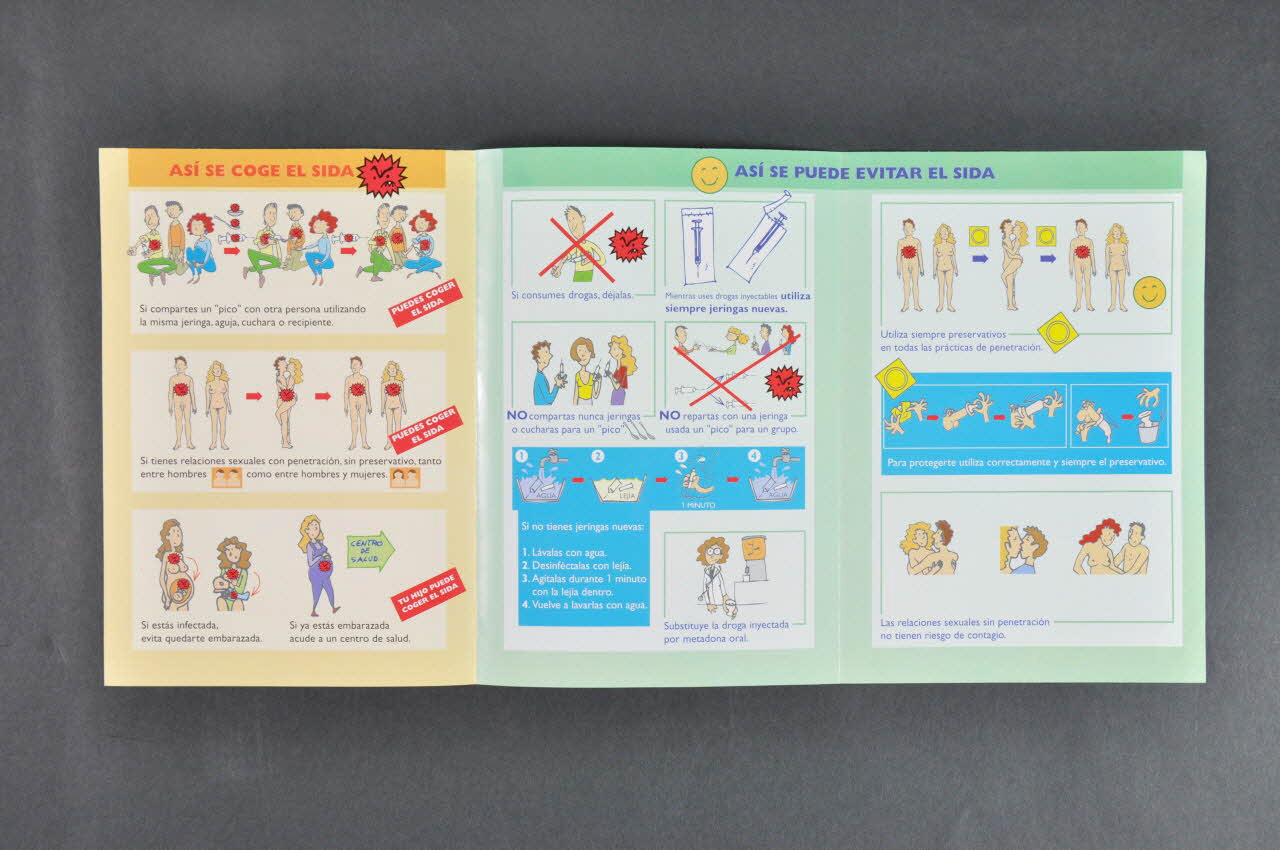 ASI SE COFE EL SIDA // // ASI SE PUEDE EVITAR EL SIDA // // ?COMO SABER SI TENGO EL SIDA? // // RECUERDA (Dans le bandeau supérieur de chaque feuillet.), à l'intérieurDécor