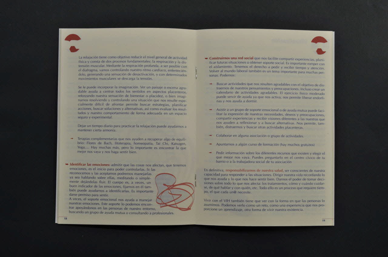 Guia d'autoayuda emocional para personas con VIH (Le sous-titre se trouve sur la couverture.), sur la couverture@ 2000 Actuà (programa de soporte individual y grupal) (En page 34, se trouve l'organisme auteur de la publication.), à l'intérieurDécor